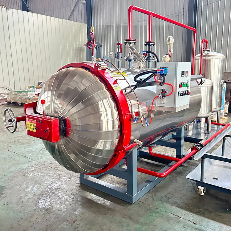 3.高安全性:圧力自動安全インターロック、手動安全インターロック、圧力自動制御システム、ポットドア用の手動エアリリースバルブ、安全バルブなどの5レベルの安全保護対策。国際的に安全な圧力容器機器を作成します。